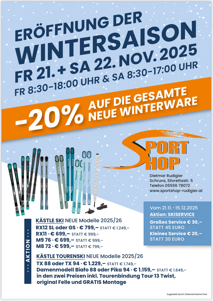 In unserem Sportgeschäft im Herzen der montafoner Alpen bieten wir Ihnen alles für Ihr optimales Wintersporterlebnis. Lassen Sie sich